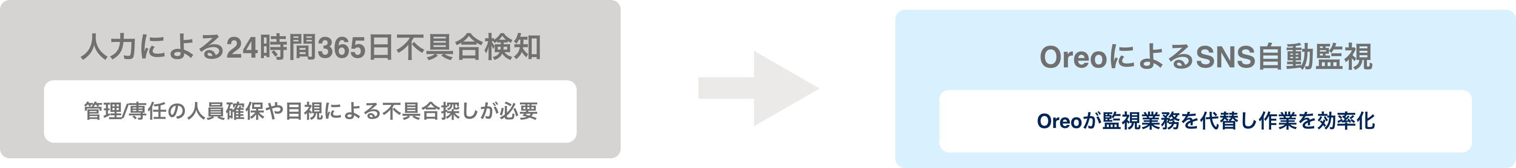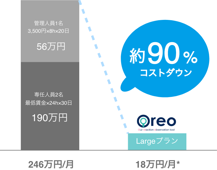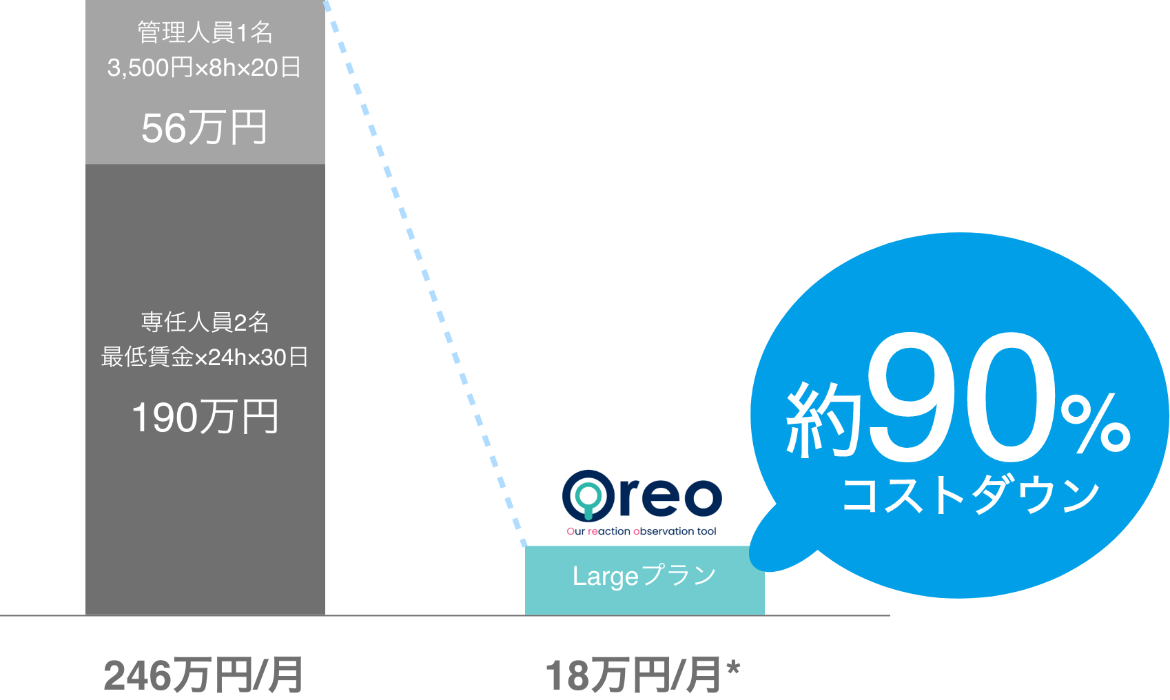 人力による目視の不具合検知と24時間体制の運用は、人員確保と高額な運用コストが課題になります。Oreoを導入することで人的監視から解放され、費用を大幅に削減できます。